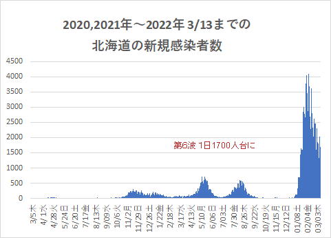 [図]:2020年から今年の3月13日現在までの北海道の感染者数